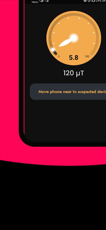 O EMF Radiation Finder e o detector de radiação emf funcionam perfeitamente em muitos dispositivos, mas alguns telefones não têm sensor magnético que não pode detectar emf porque o detector de emf funciona com radiação magnética. Este detector de radiação emf é uma interface de usuário fácil, basta mover-se para perto de dispositivos suspeitos e o detector automático de radiação EMF mostra a leitura.