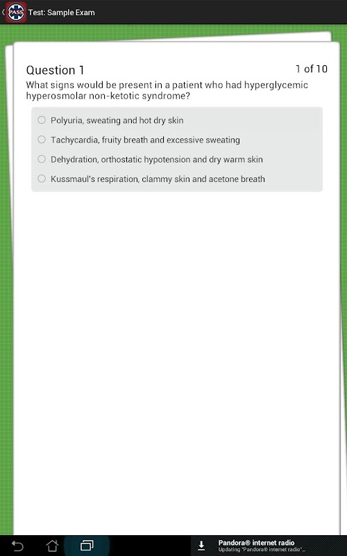 This app contains a sample exam of 10 representative questions and audio rationales. The full version can purchased for $29.99. If you have an account on LC-Ready with EMT PASS you can use this version to sign in and sync all of your exams.