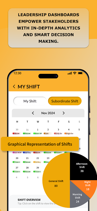Painel de fácil acesso para monitorar presença em tempo real, bem como tendências da força de trabalho