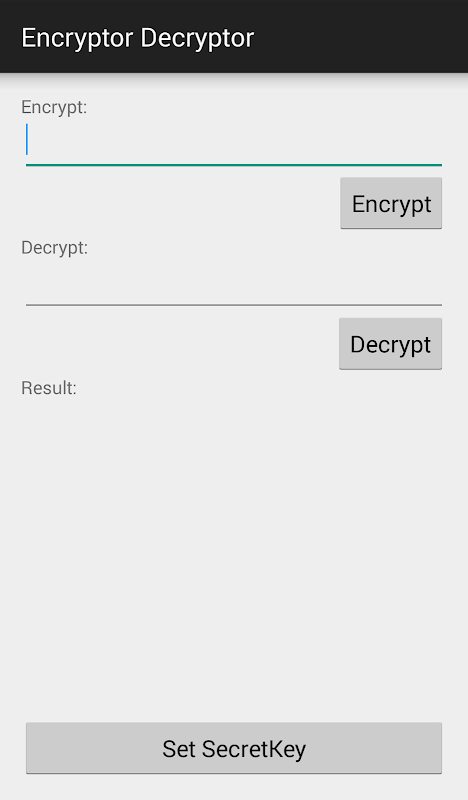 NOTAS: secretKey será salvo dentro de sua aplicação, uma vez inserido (pode ser alterado a qualquer momento). Seu secretKey criptografados bem em seguida, guardado para ter certeza de que, mesmo se cortado, ninguém será capaz de roubar sua chave secreta e decifrar as mensagens enviadas.