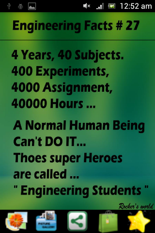 ENGINEERING FACTS– The name is enough to make you realize how hilarious quotes will be there in this app. Engineers are reputed but they can be the most notorious guys in the world. They are the best creatures available in this ERA. Just laugh with the facts of engineers and please engineers don’t burst in tears after seeing this reality again….. LOL