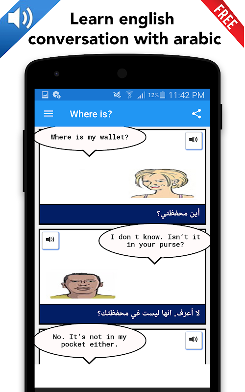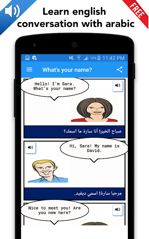 o aplicativo de diálogo em inglês árabe para melhorar suas habilidades em inglês e árabe.