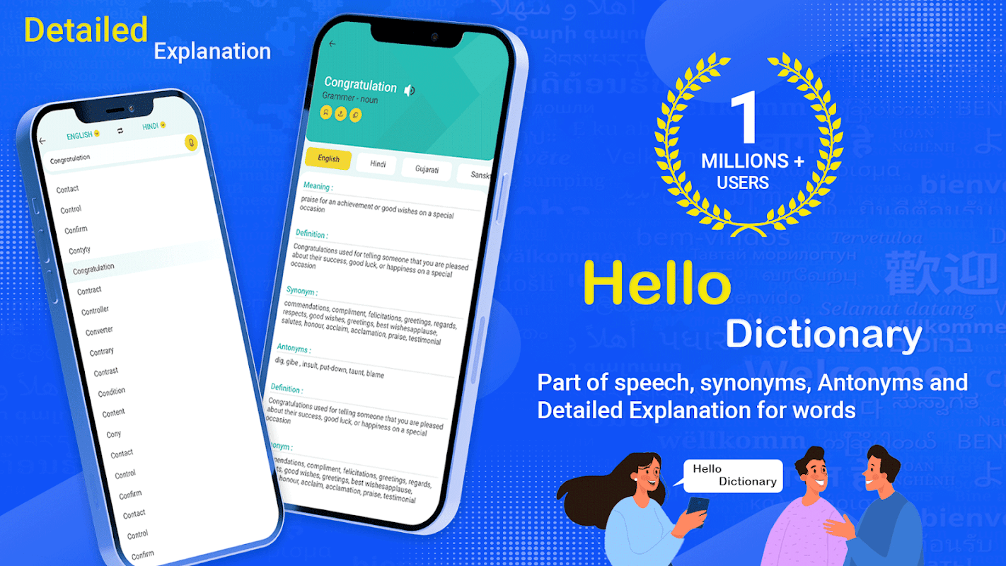 1.Dictionary - With Hello Dictionary App you can get multiple meanings, definitions, related words, and proper explanations.