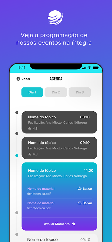 Através do nosso novo APP, é possível ter acesso a informações a respeito dos programas e cursos da English Transform na palma da mão. Os alunos poderão, através de seu acesso, conferir a agenda de palestras, workshops e experiências práticas; obter os materiais disponibilizados pelos facilitadores dos momentos; conectar-se com os demais participantes e fazer valer a experiência de aprendizagem.