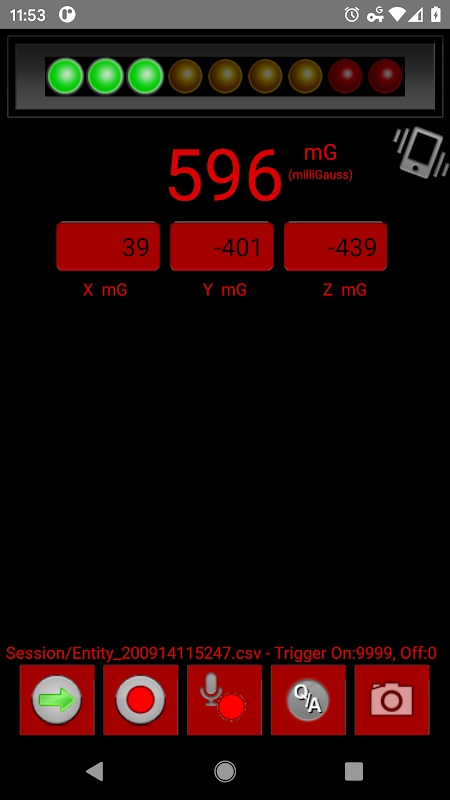 Isso funciona exatamente como detectores EMF para fins especiais que custam até várias centenas de dólares e são usados em programas de TV paranormais para encontrar fantasmas, exceto que com este aplicativo você pode salvar os resultados.