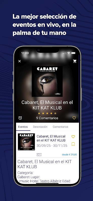 - Consulte todas as informações necessárias sobre o local do evento: opiniões de outros compradores, como chegar, toda a sua programação e imagens.