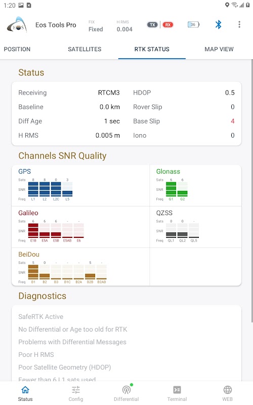 O Eos Tools Pro é um utilitário de monitoramento para os receptores GPS/GNSS de alta precisão das séries Arrow e Skadi da Eos Positioning Systems. Ele fornece informações avançadas de GNSS, como valores RMS, PDOP, status diferencial, satélites rastreados e utilizados, essenciais para a coleta de dados GIS e topográficos em submetros e centímetros.