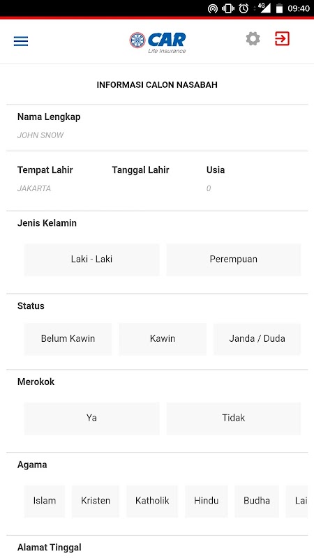 Esta aplicação pode ser feita SPAJ on-line para o ePolicy