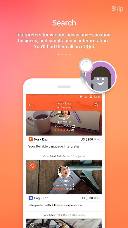 eQQui é um mercado global feita para conectar intérpretes para os clientes.