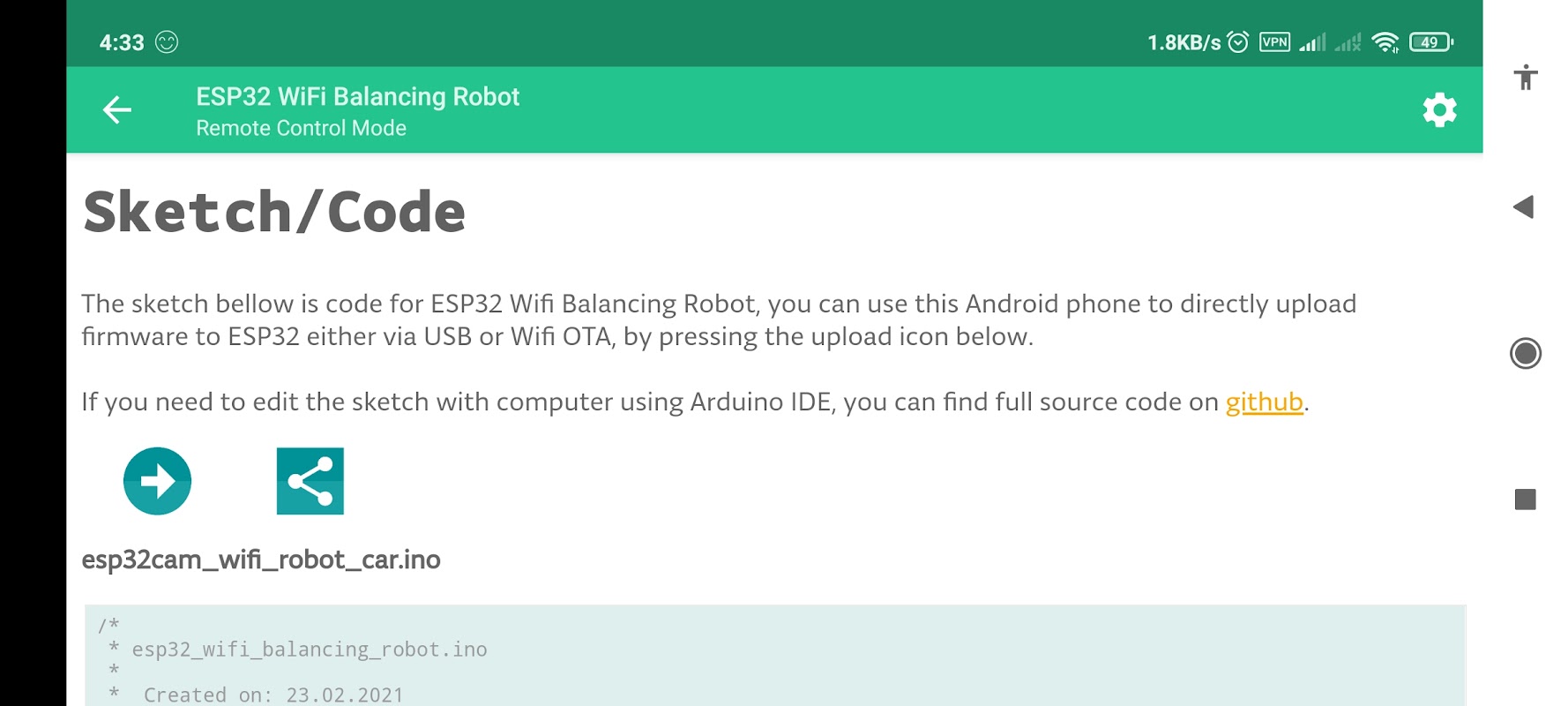 Este aplicativo foi projetado para tornar mais fácil para você construir uma placa ESP32 de uso de robô de balanceamento Wifi. O aplicativo permite que você controle um robô baseado em ESP32 por Wifi (modo AP / STA) e também pode fazer upload de um esboço / código diretamente do seu telefone Android para a placa ESP32 via USB OTG ou Wifi OTA (Over-theAir). \ N \ nPor favor, esteja ciente de que este aplicativo contém anúncios e possível compra no aplicativo para melhorar o próximo desenvolvimento de aplicativos.