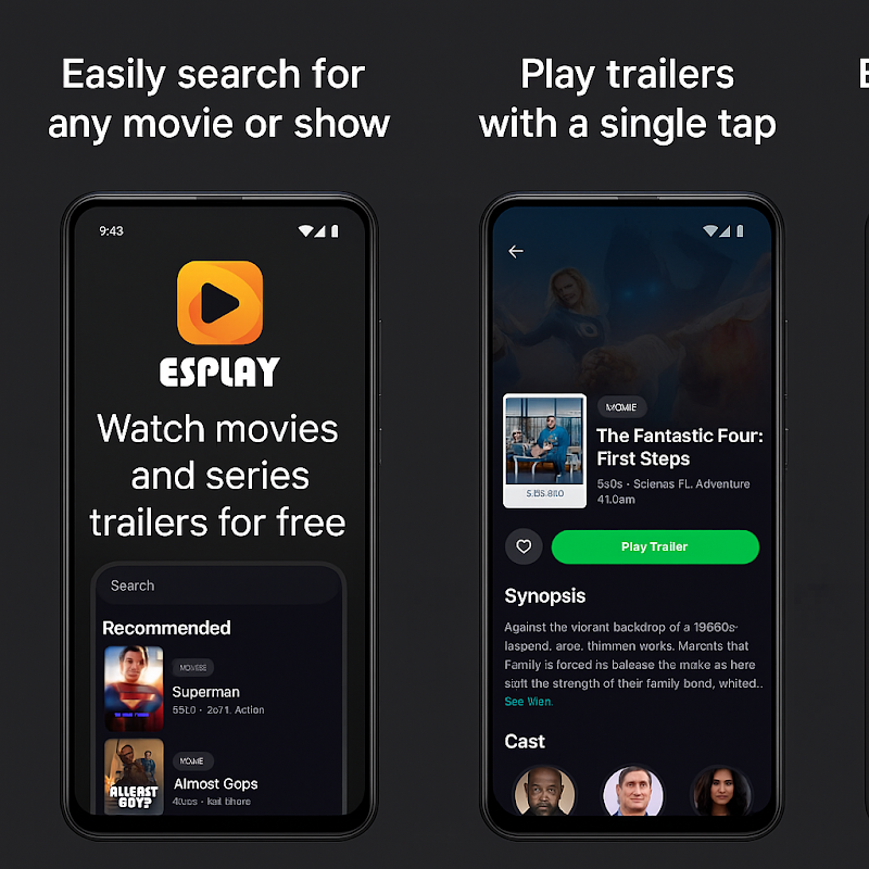 O ESplay é a sua porta de entrada definitiva para explorar os trailers de filmes mais recentes, lançamentos em alta e informações detalhadas sobre filmes e programas de TV — tudo em um aplicativo limpo, rápido e fácil de usar.