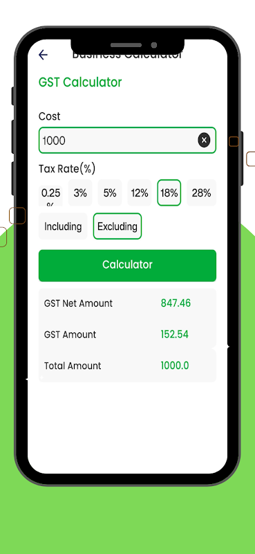 Calcule rapidamente impostos e porcentagens de GST para valores inclusivos e exclusivos. Esse recurso é perfeito para proprietários de empresas, contadores e qualquer pessoa que gerencia finanças.