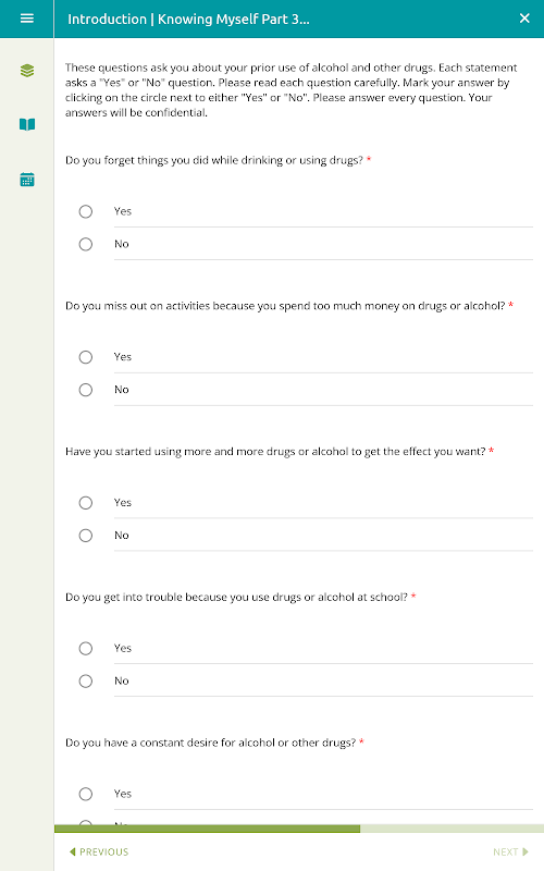 Este aplicativo é um kit de ferramentas para adolescentes que desejam ajuda para resolver questões e problemas cotidianos. Habilidades específicas se concentram em gerenciar a tomada de decisões, lidar com o estresse e evitar gatilhos que levam ao uso de drogas, incluindo o uso de opioides. Cada ferramenta no aplicativo fornece alguma educação, bem como atividades envolventes que promovem a construção de habilidades práticas e significativas para você aprender e aplicar facilmente.