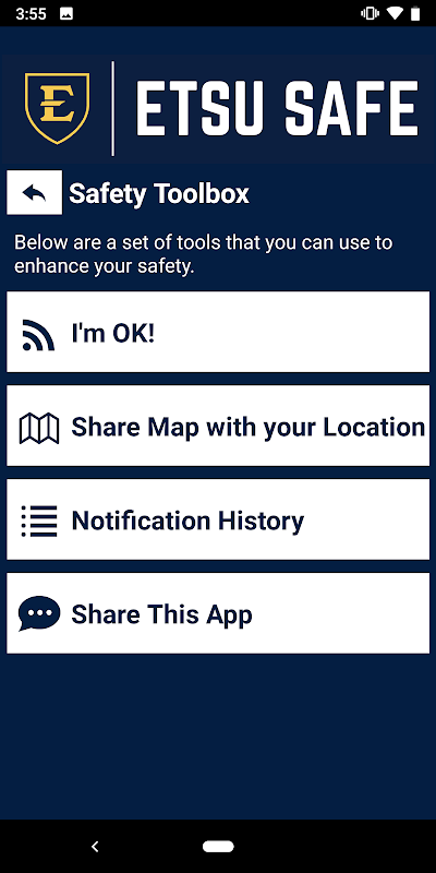 - Safety Notifications: Receive instant notifications and instructions from ETSU safety when on-campus emergencies occur.