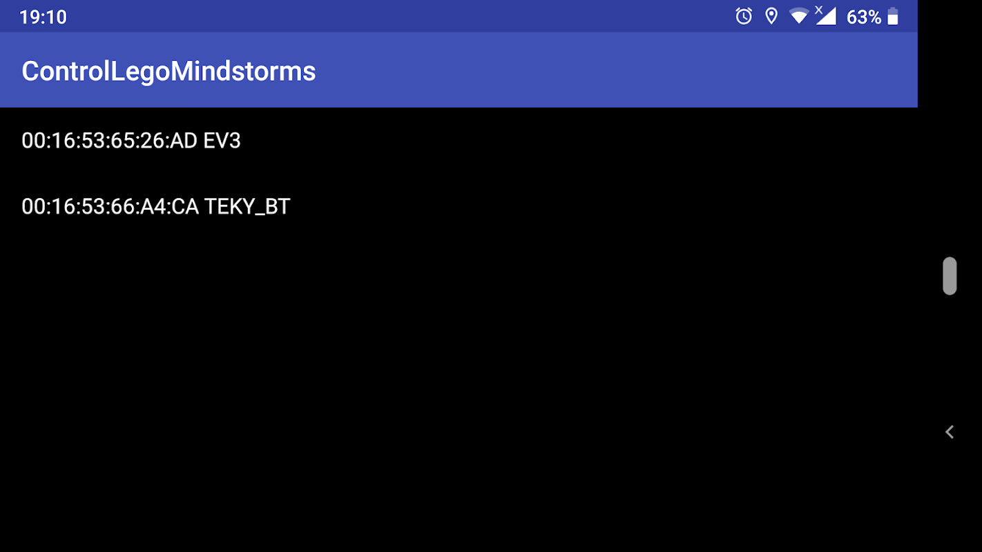 This app controls motors of Lego Mindstorms Education EV3. You need to connect large motor for B, C port and medium motor for A port on Brick EV3. The display of app have button connect and disconnect with Brick EV3. Below is spinner tab for customize speed of motors. Finnally, five button for using control motor: Right, Left, Up, Down and Medium motor.