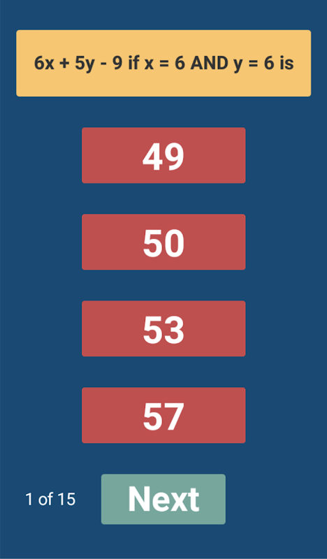 Evaluating algebraic expressions with one or two variables. To evaluate an algebraic expression you have to substitute each variable with a number and perform the operations included (addition and subtraction). An infinite series of exercises to practice with. Now let's practice with Evaluta!