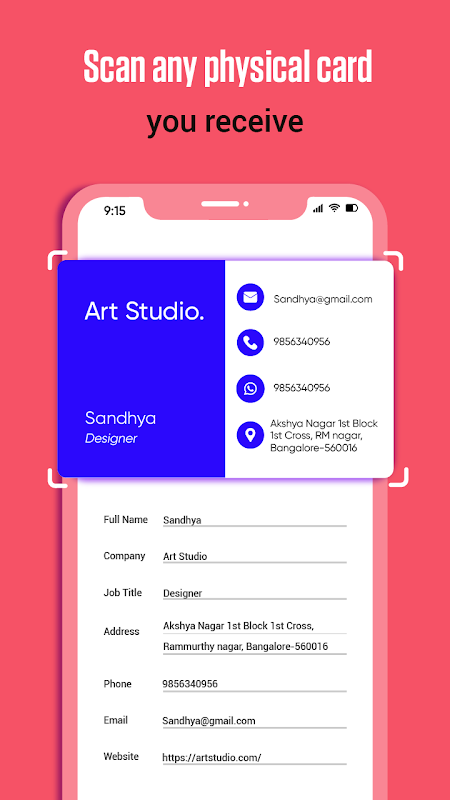 - Digitalizar - você digitaliza o cartão de visita usando este aplicativo leitor de cartão de visita ocr também funciona como organizador de cartão de visita