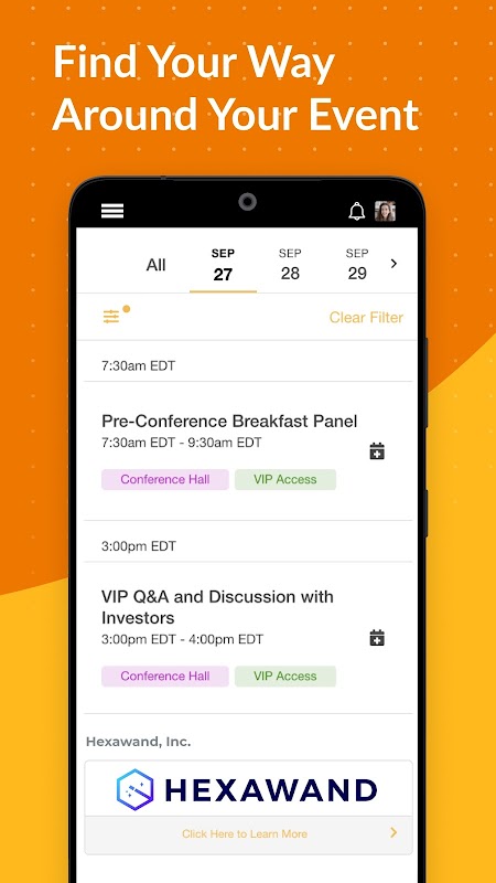 - Veja o que virá a seguir no evento e gerencie sua programação
