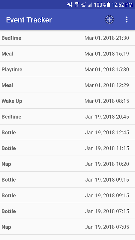 Um aplicativo de rastreamento de evento que pode resumir vários dias de dados