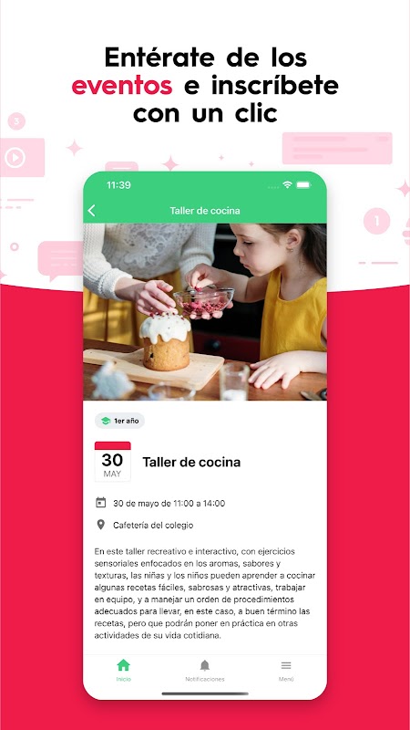 As comunicações estão mais interativas do que nunca. Além de uma mensagem de texto simples, você pode abrir links com um toque para se conectar a uma videochamada, preencher um formulário, acessar a plataforma educacional, sites externos ou documentos compartilhados. Você também pode abrir arquivos, ver fotos, reproduzir vídeos e áudios, inscrever-se para atividades e muito mais.