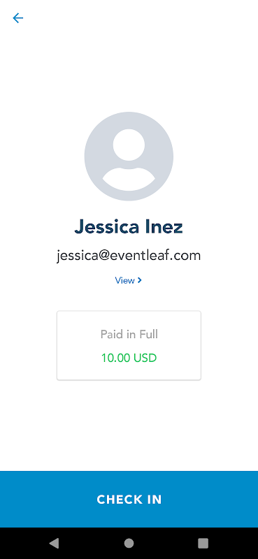 Use o check Eventleaf No aplicativo em seu telefone Android ou tablet para validar rapidamente, pagamentos de cartão de crédito processo e check-in os hóspedes no local em seu evento.