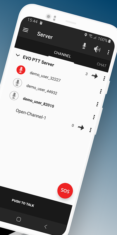 Note: The demo channel is public and shared with other users evaluating EVO PTT.