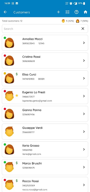 ○ Lista de clientes para contatá-los via e-mail, whatsapp, SMS (*) e chamadas telefônicas (*)
