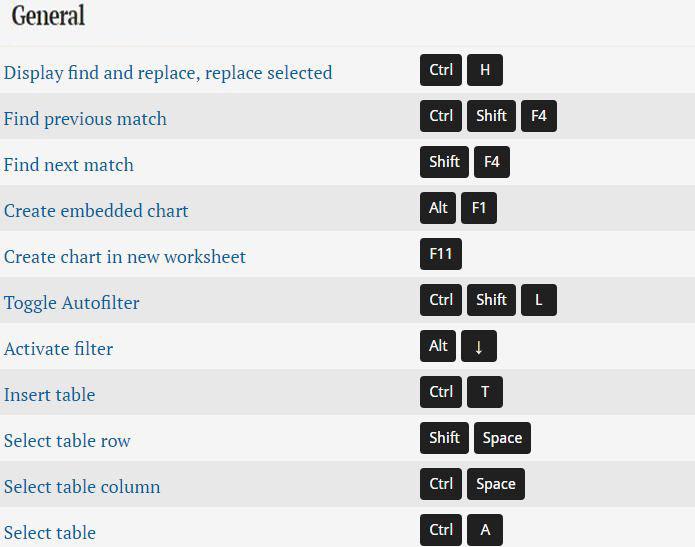 Excel shortcuts