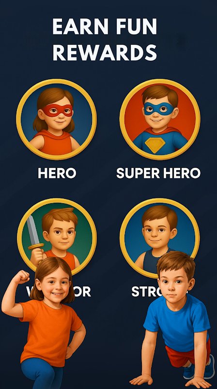 O exercício para crianças é um aplicativo de exercícios de treino para crianças e famílias em casa offline.