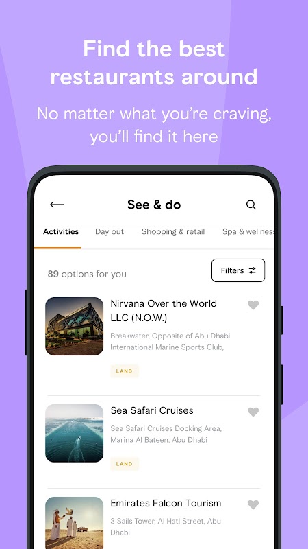 • Listas completas de hotéis, restaurantes, spas e salões de beleza com filtros para encontrar o que é melhor para você