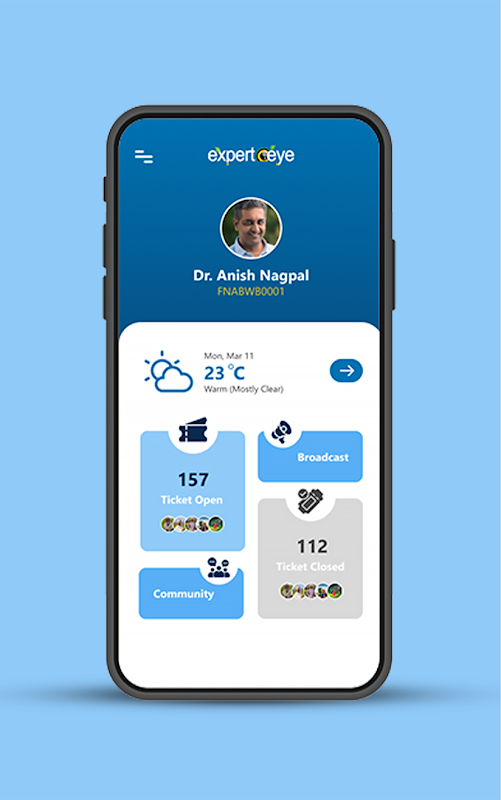 O agricultor precisa de orientação. Através do Expert Eye, os cientistas agrícolas verificam as fazendas remotamente, projetam práticas para fazendas individuais e orientam continuamente o agricultor em modo de voz/texto ou vídeo.