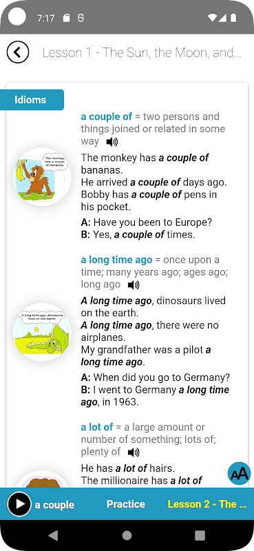 Dentro de cada lição, os idiomas-alvo são definidos primeiro para os alunos. As definições podem explicar o idioma em termos simples ou usar sinônimos ou outros idiomas para construir a compreensão do aluno sobre o significado subjacente a cada idioma. Cada definição é seguida por frases de amostra e diálogos curtos usando o idioma no contexto. Finalmente, os idiomas são ilustrados com ilustrações humorísticas que podem ajudar a construir uma imagem memorável do uso de cada idioma na mente do leitor.