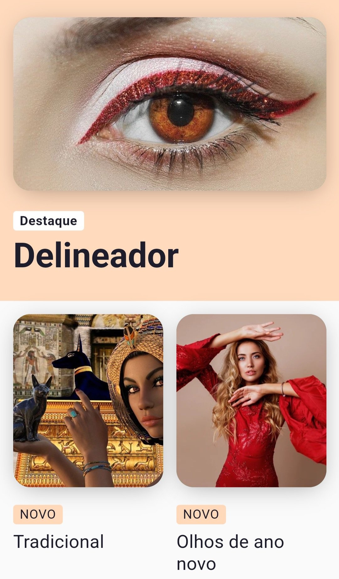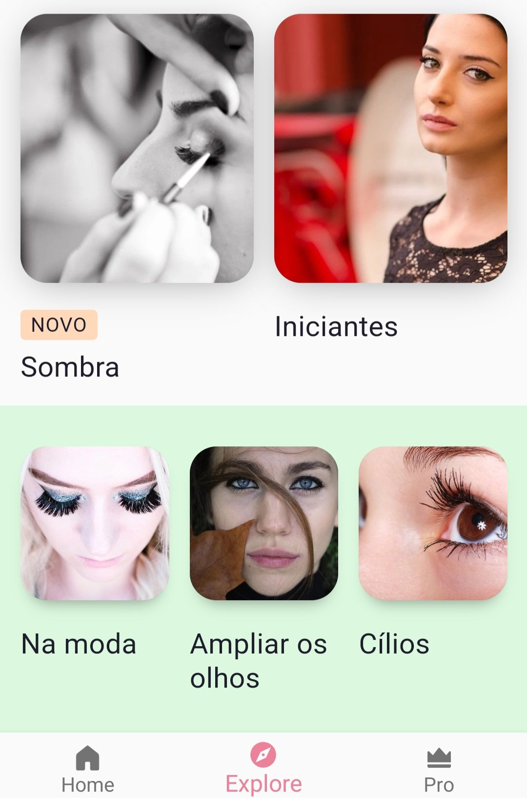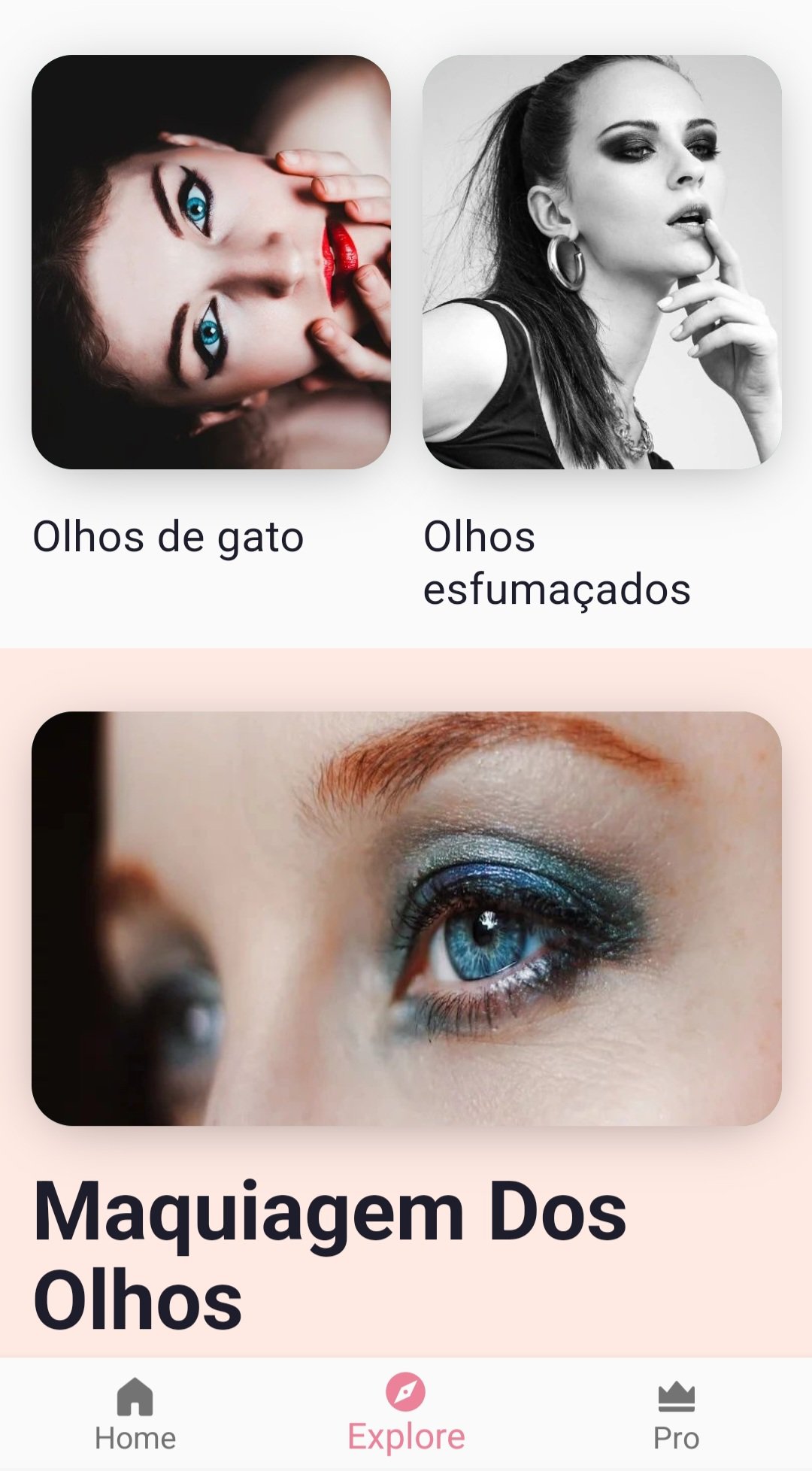 O aplicativo de maquiagem dos olhos fáceis é o lugar perfeito para você aprender diferentes categorias de maquiagem dos olhos. Comece a aprender tutoriais de maquiagem para os olhos do iniciante ao nível de especialista. Temos respostas para todas as suas dúvidas sobre maquiagem dos olhos. De esconder olheiras para forrar suas pálpebras, há várias maneiras de melhorar seus olhos pequenos, para aqueles de nós com olhos menores, dominando a maquiagem dos olhos para fazer os olhos parecerem. Aprenda a fazer maquiagem para os olhos com dicas de eyeliner à prova de falhas, dicas de sombra para os olhos e tutoriais de olho esfumaçado e muito mais para o seu próximo visual deslumbrante. Escolha os melhores produtos de maquiagem para o seu look perfeito para a próxima noite.