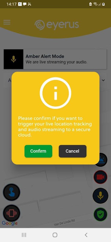 Simplesmente agitando seu telefone, você pode ativar automaticamente o modo de alerta âmbar que aciona a transmissão de áudio ao vivo para uma nuvem segura. Você pode ativar o modo de alerta âmbar em qualquer situação em que se sinta inseguro.