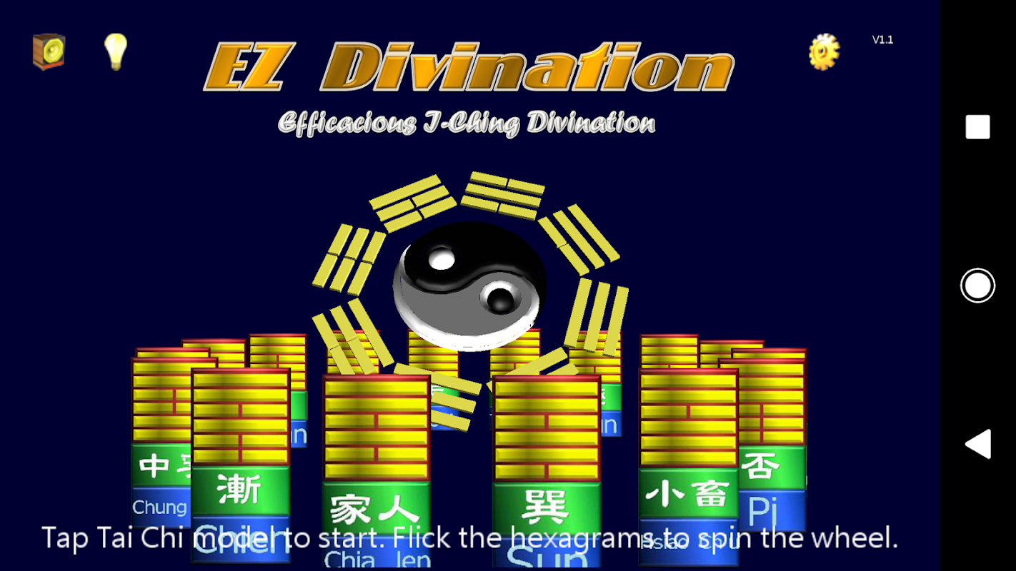 A versão gratuita oferece funções completas de adivinhação de mil-folhas e moedas e define linhas hexagramas para consulta. Três perguntas de consulta, Desejo, Clima e Mudança, podem ser selecionadas para consulta. A compra no aplicativo permite outras 17 perguntas para consulta e fornece informações sobre o significado e a sorte do Hexagrama.