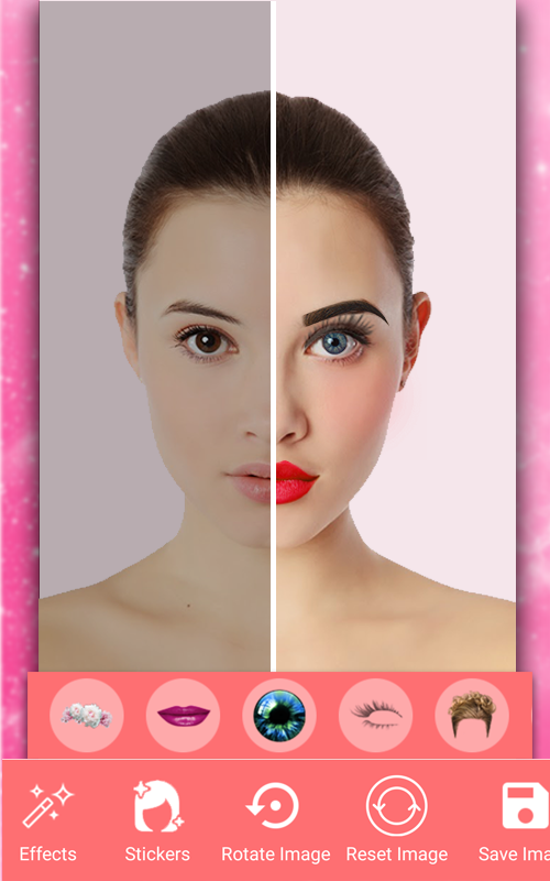 Clique em uma foto e aprimorá-la, aplicando todos os tipos de maquiagem, como fundação de rosto, batom e corações, eliminando manchas usando um removedor de manchas, branqueando diferentes porções na foto, alterando a cor dos olhos e dando-lhe um olhar embaçado. Face Makeup Beauty tem mais avançados cosméticos para fazer o seu rosto em fotos e transformá-los em belos rostos. Agora é tão fácil de ser bonita, antes de tentar uma maquiagem em seu rosto, por que você não experimentá-lo virtualmente usando este aplicativo Temos produzir Face Maquiagem beleza aplicação para you.Now você não precisa mais Photoshop para fazer rostos pop in Photos.Take uma foto com câmera selfie e criar melhores fotos com fotos avançadas Beautify ferramentas de maquiagem rosto para transformar suas fotos tão bonito