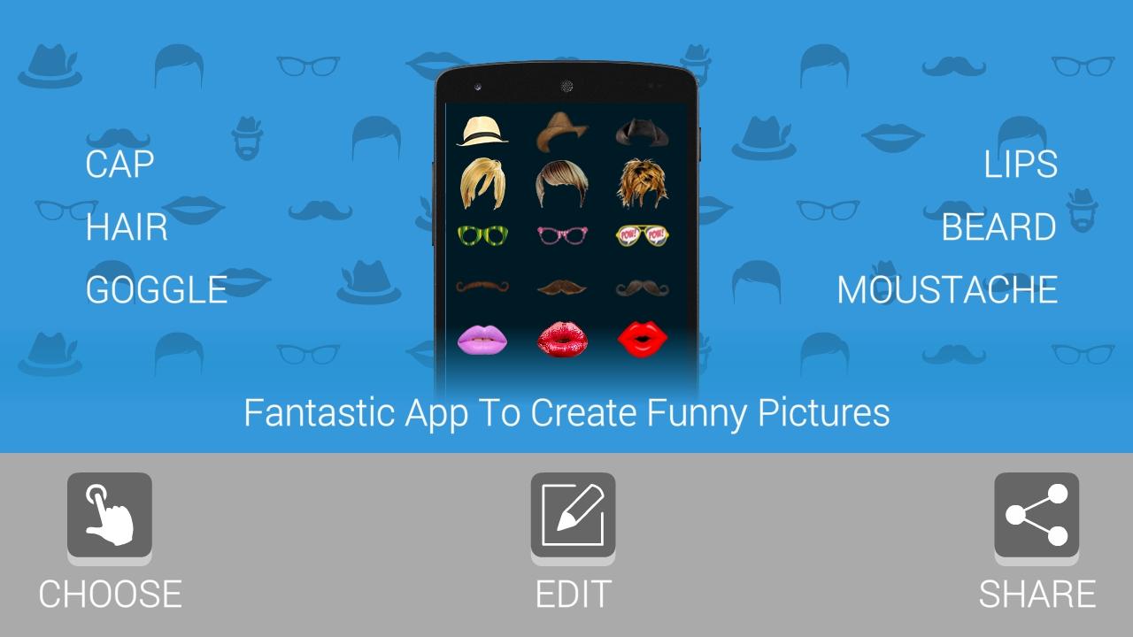 A fantastic app to give your images a personal touch! This amazing face changer photo editor enables users to add unique, funny effects in their photos. Bring a smile on faces around you! Import an image & start personalizing by selecting between huge categories of options. Our funny photo edit or indulges with hilarious material which you can apply on your pics.