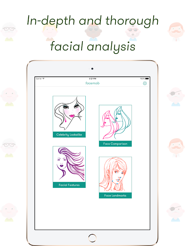 * Características faciais: Facetouch fará a varredura de todos os rostos, desde a imagem e dar-lhe a idade, o sorriso percentuais, sexo, óculos e informações corrida.
