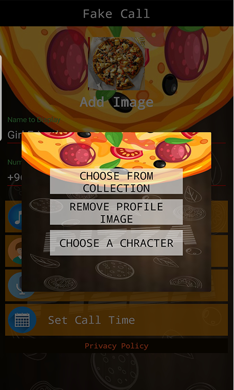 Use uma brincadeira PIZZA de chamada falsa para se livrar de situações difíceis. receba chamadas com foto e voz pré-gravada personalizável.