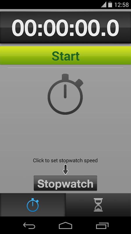 -To set up the stopwatch, click on the "stopwatch" button on the bottom on the screen to show the hidden controls and slide the bar to adjust how fast the fake stopwatch will run.