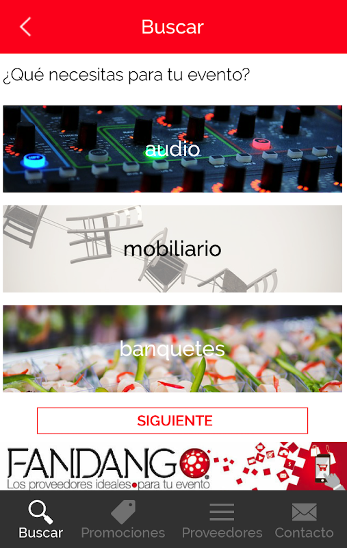 Diretório interativo para visualizar determinados prestadores de seções para organizar o seu evento.