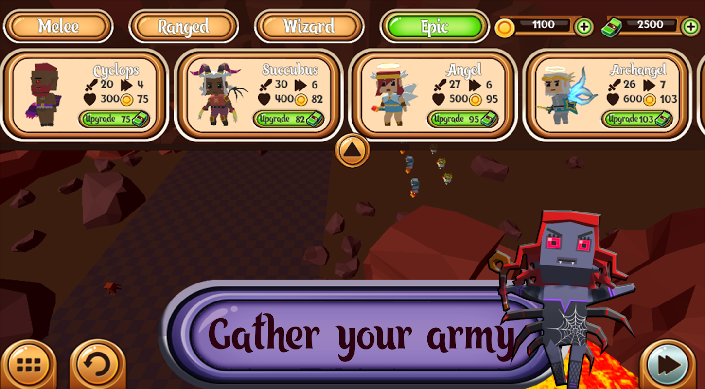 O reino está em perigo! 💀 O terrível dragão necromante levantou as hordas de esqueletos, golems, fantasmas e outras criaturas horríveis para uma batalha épica. Você não está sozinho. Você será ajudado por vários guerreiros. Contrate tropas e coloque-as no campo de batalha. Assim que a batalha começar, eles lutarão por você!