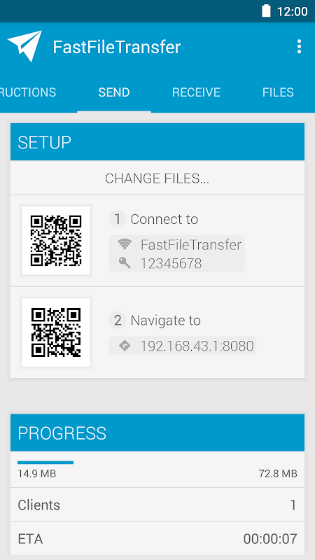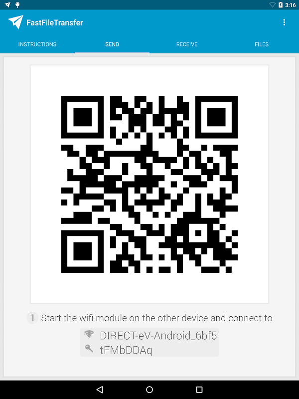 • Deixe FastFileTransfer faz toda a configuração de recepção através do built-in leitor de QR