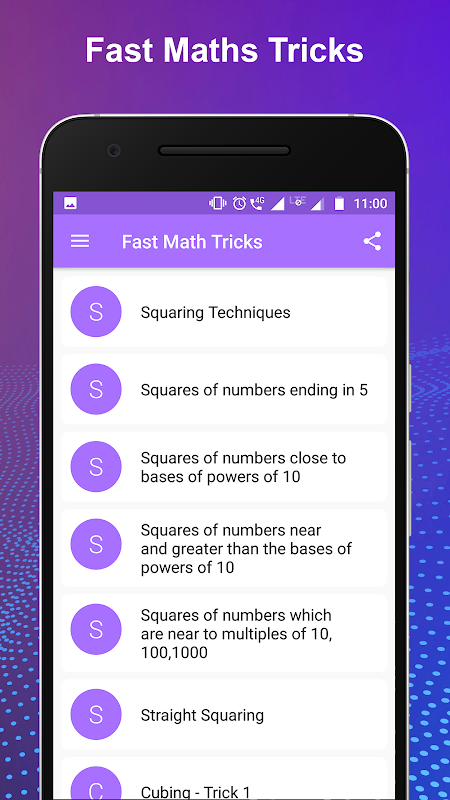Techniques in this app simplify multiplication, divisibility, complex numbers, squaring, cubing, square and cube roots.