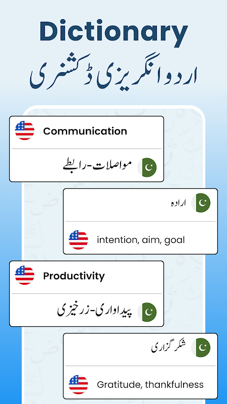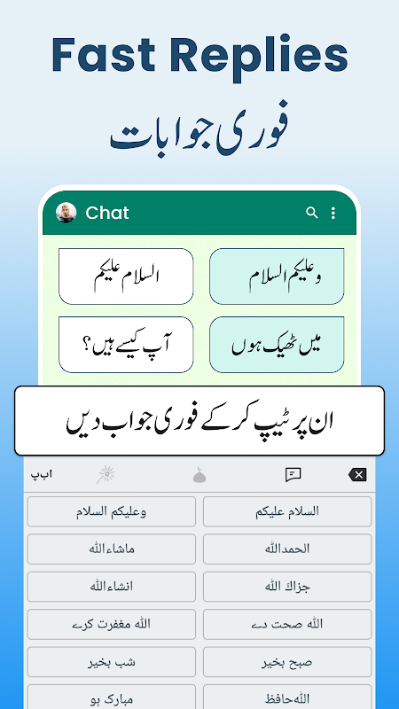 Outra opção excelente e útil no Urdu Fast Keyboard é a disponibilidade de frases úteis e fáceis de digitar em urdu. Com essas frases, como frases usadas em saudações, boas-vindas, despedidas e outras diferentes frases culturais sociais do Paquistão e islâmico, você não precisa se preocupar em digitar essas frases, em vez disso, o aplicativo apresenta-as em um formato fácil e rápido com um toque único.