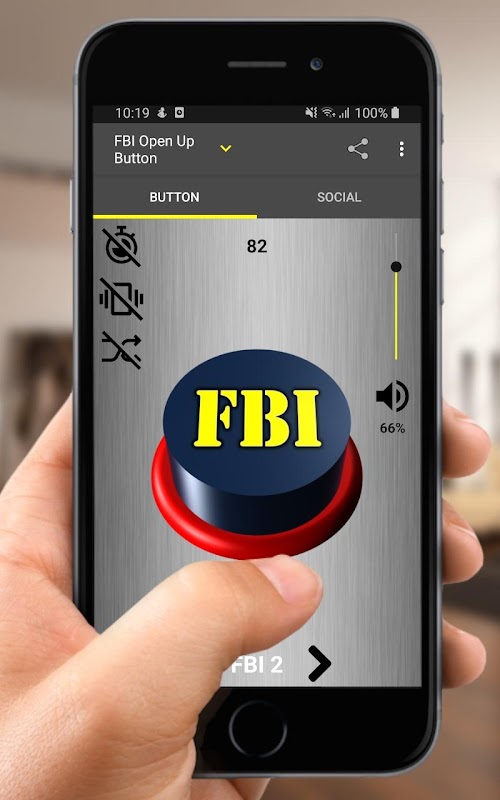 Efeito sonoro meme FBI Open Up ao pressionar o botão.