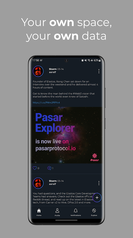 Um aplicativo social descentralizado onde os usuários mantêm o controle total de seus dados