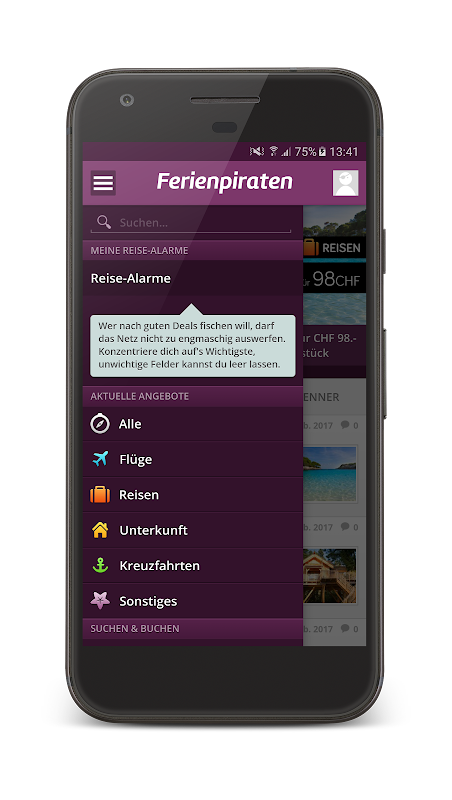 Du brauchst Ferien? Suchst du nach günstigen Flügen, Pauschalreisen, Hotels oder Gutscheinen? Dann bist du hier richtig! Du bekommst die besten Schnäppchen der Ferienpiraten direkt auf dein Smartphone und sparst jede Menge Geld bei deinem nächsten Urlaub! In der App kannst du ganz bequem unsere besten Reiseschnäppchen durchstöbern. Stell einfach deinen persönlichen Reisealarm ein und du bekommst passende Angebote als einer der ersten sobald wir sie gefunden haben.