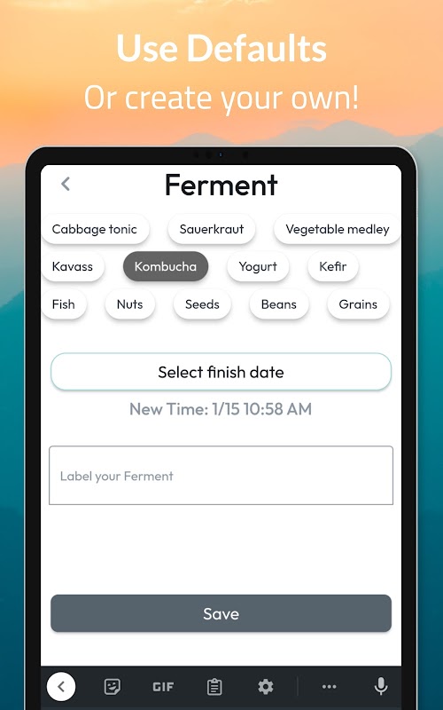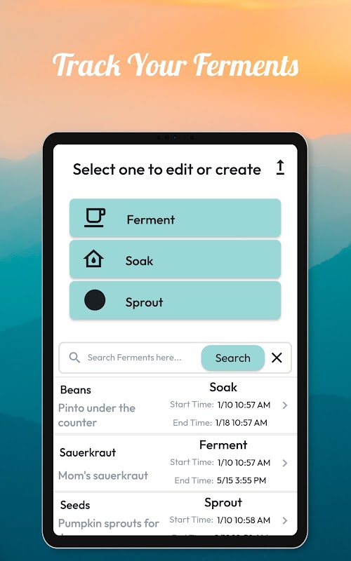 Chega de rabiscar notas em pedaços de papel ou lutar para lembrar quando você começou aquele chucrute! Com a interface intuitiva do Ferment Scheduler, você pode rastrear facilmente seus fermentos, molhos e brotos em um local conveniente.