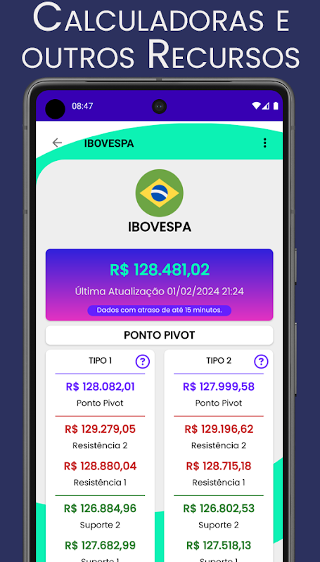 Possui também calculadoras para Análise Técnica, como calculadora de Risco, Fibonacci e mais.